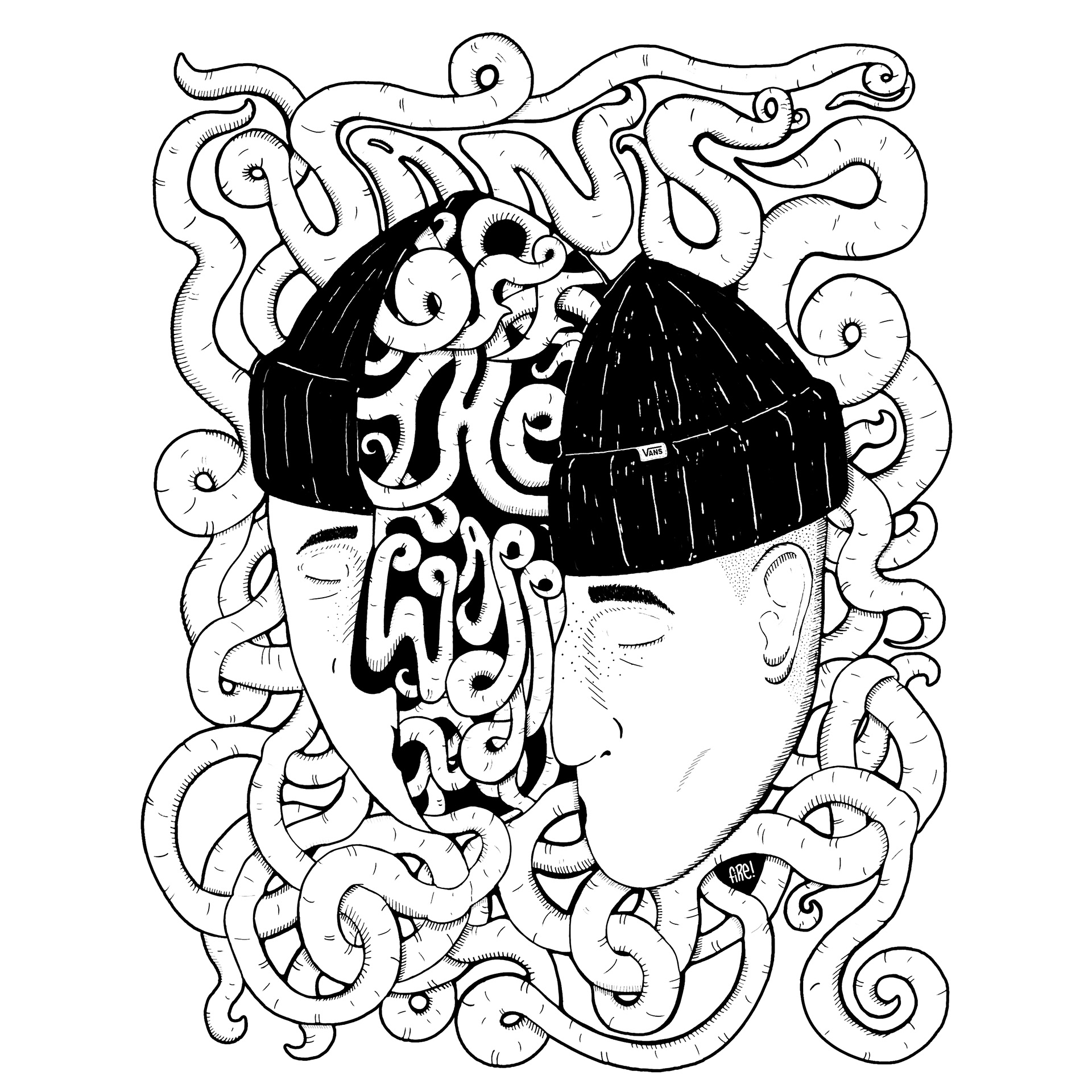 Ilustração desenvolvida junto ao marketing da vans para um kit promocional que continha a sacola retornável e diversos brindes da marca.